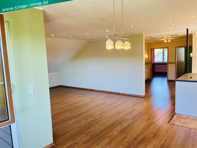 2013 wurde diese schöne Wohnung im Dachgeschoss eines Einfamilienhauses ausgebaut. Die Wohnfläche beträgt 100 qm und beinhaltet einen großen Wohn-Essraum mit Diele und anschließender offener Küche inkl. Einbauten, 2 Zimmer, Bad, Balkon-Loggia, 2 kleine Abstellräume und eine Dachspitzboden. Nebenkosten 160 € pro Monat, Kaution erforderlich, Vermietung nur an max. 2 Personen, Nichtraucher und ohne Haustiere.