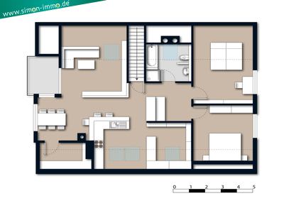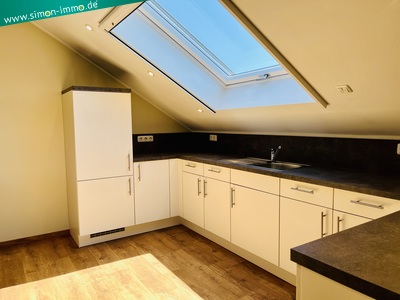 | Raumaufteilung: | Dachgeschosswohnung mit Wohn-Essraum und offener Küche, sowie anschließender Loggia, zwei Zimmer, Bad mit Dusche, Eckbadewanne und WC, Hauswirtschaftsraum mit Waschmaschinenanschluss, zwei kleine Abstellräume. In der Dachspitze (erreichbar über eine Deckeneinschubleiter in der Wohnung) befindet sich noch ein komplett ausgebauter Raum, der als Abstellraum genutzt werden kann. |